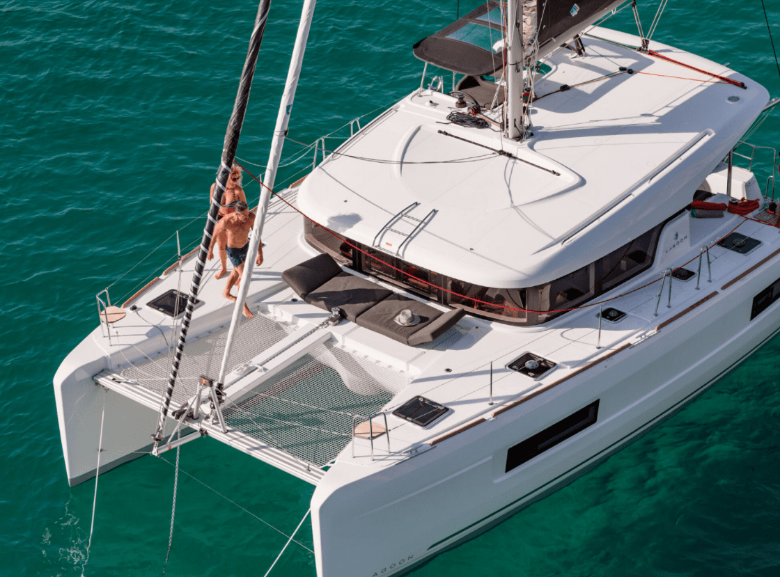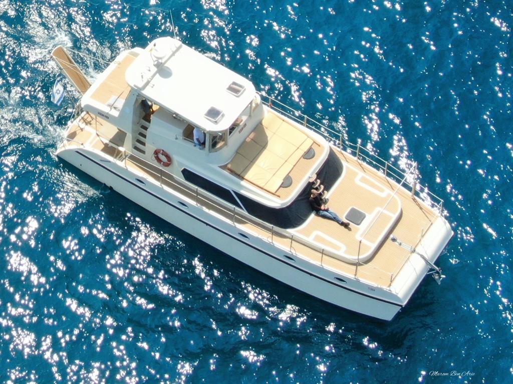 יאכטה מסוג קטמרן לגון 40 מודל 2020 עוגנת במרינה הרצליה הינה יאכטת קטמרן חדשה כמות חוגגים של עד 14 אורחים